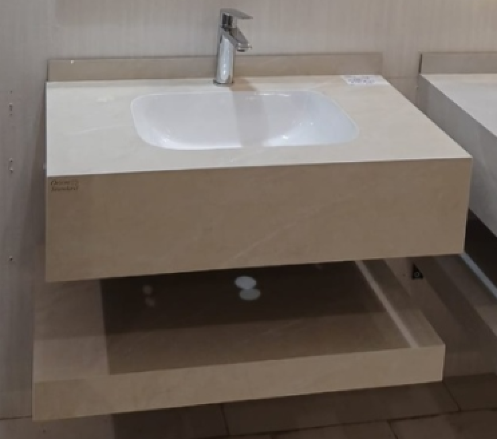 "مغسلة بورسلان حوض ليزر مقاس 80 سم بيج مرخم لامع "
