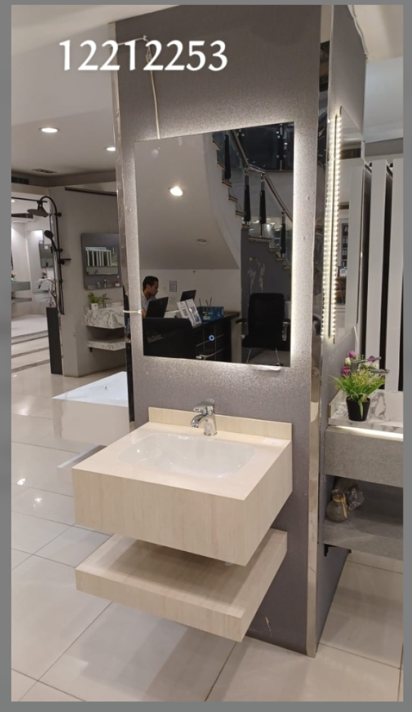 مغسلة حجر باضاءة حساس OS137 صيني ابيض 120 سم حوضين مع مراية ليد 120*70 سم