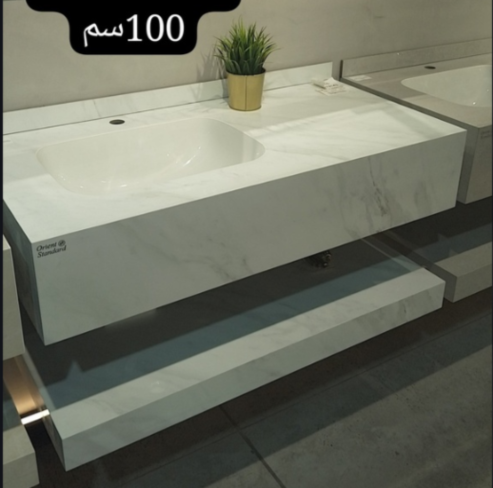"مغسلة بورسلان حوض ليزر OS176 مقاس 100 سم أبيض رخامي لامع "