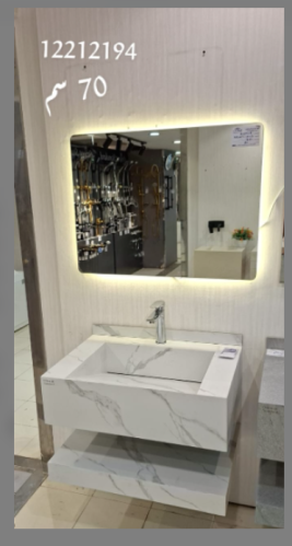 "مغسلة بورسلان حوض ليزر مقاس 80 سم ترافرتينو بيج مطفي