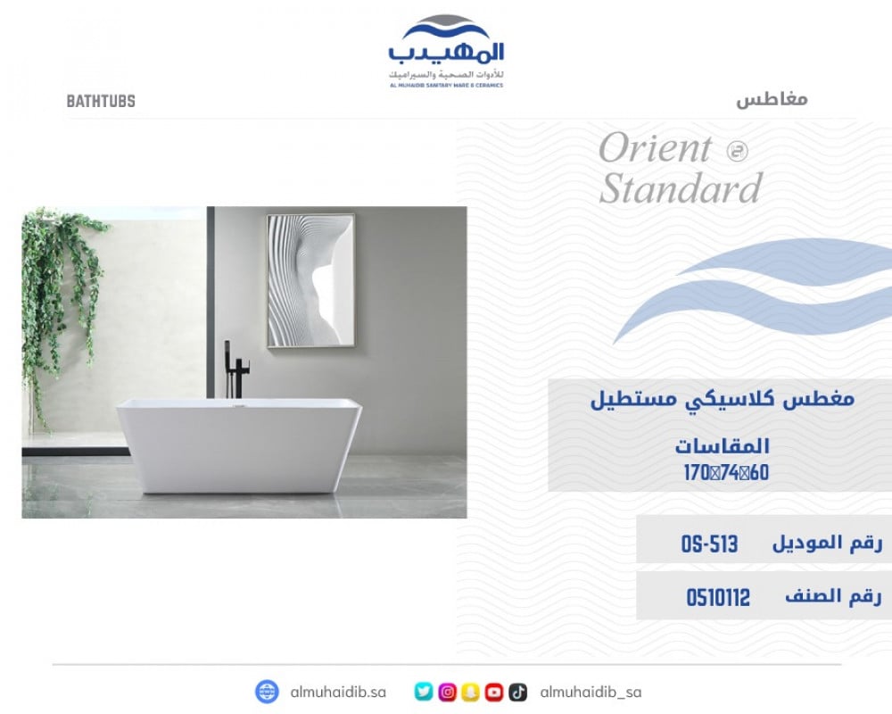 مغطس كلاسيكي مستطيل عالي الجودة يضيف لمسة من الأناقة لمكان الاستحمام ويوحي بالفخامة والرقي ويعطي شكلا فاخرا للمكان.